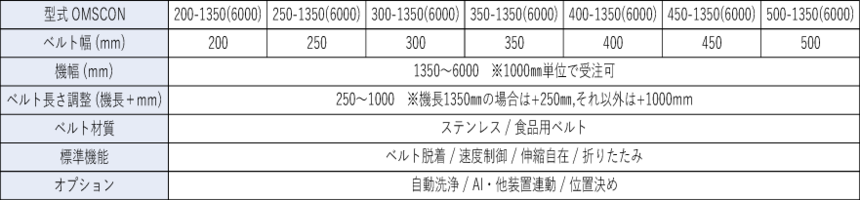 作業環境に合わせてベルト幅・機長・ベルトの長さを選ぶことが出来ます。